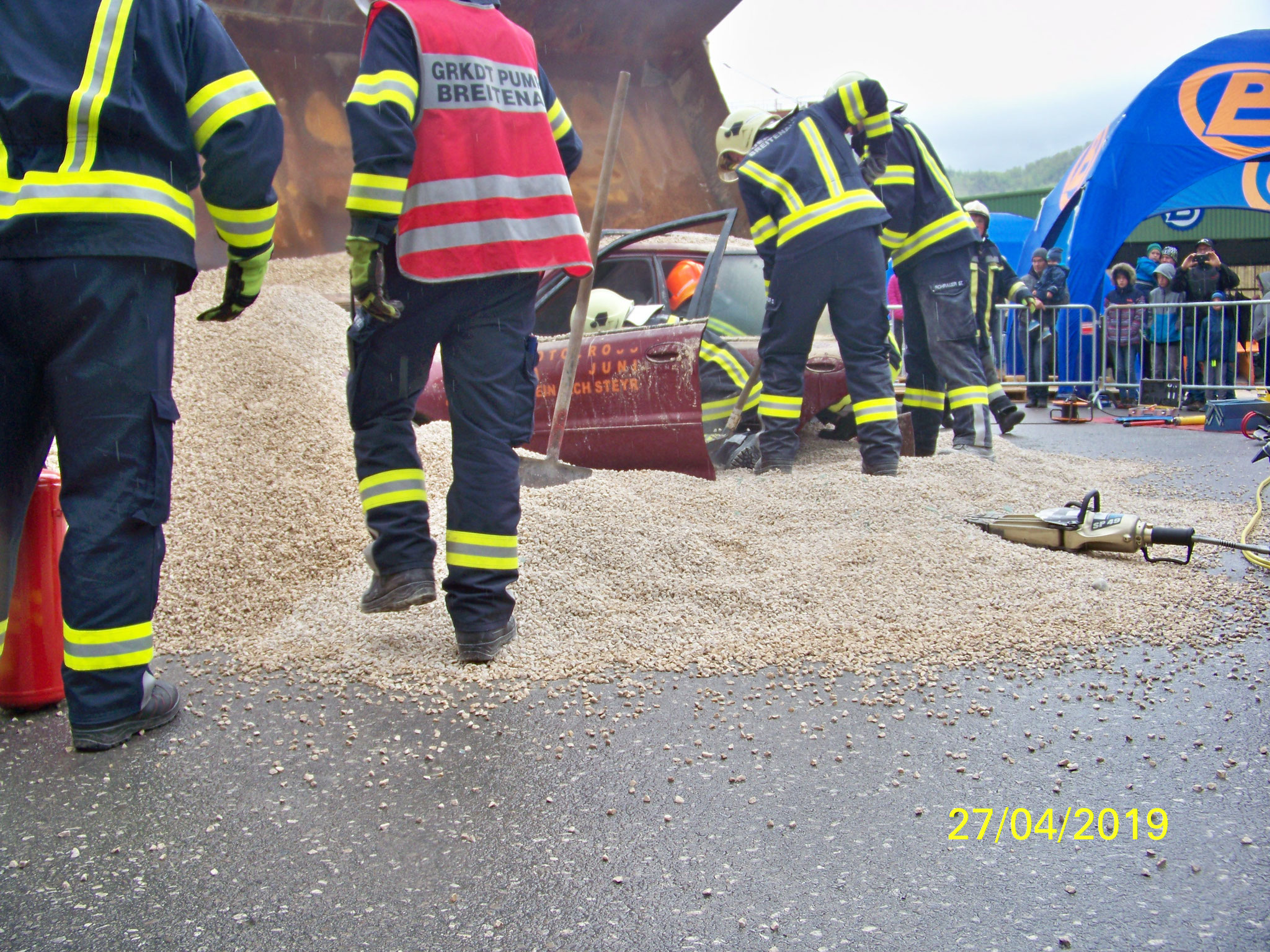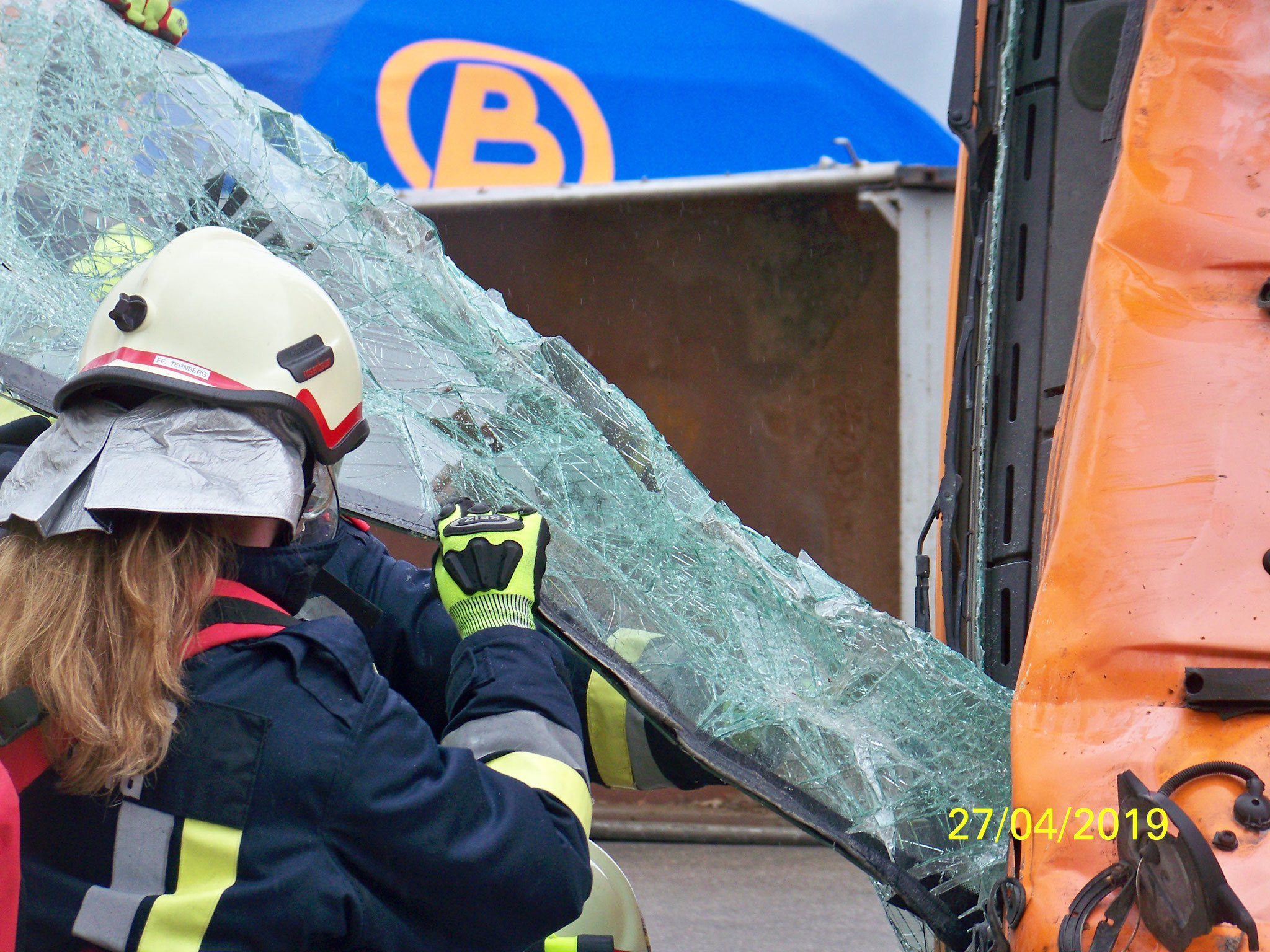 Aufgabe war es: eine Menschenrettung aus einem PKW durchzuführen,dabei wurde die Arbeit von einen Bewerterteam überwacht.